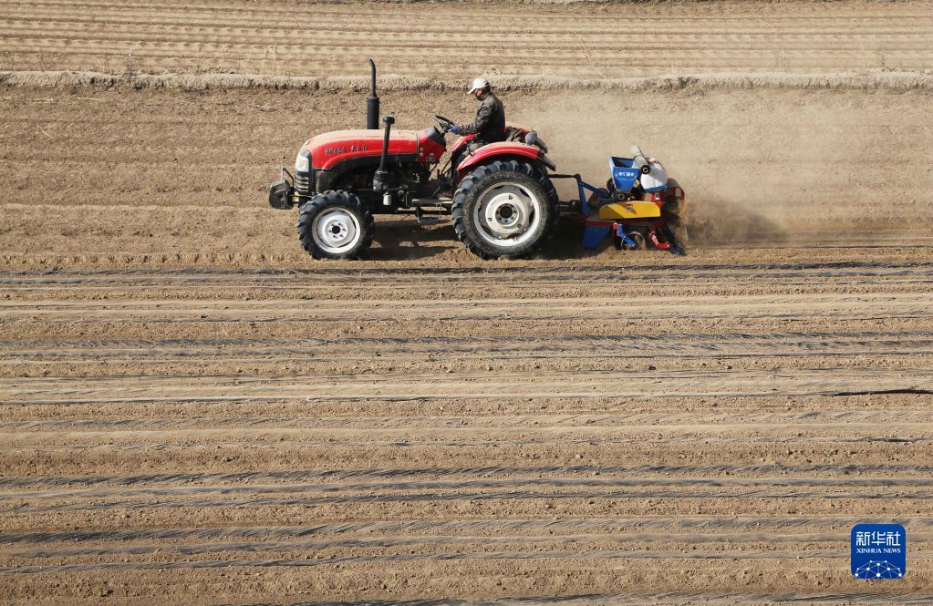 11月7日,甘肅省定西市安定區(qū)巉口鎮(zhèn)松川村,農(nóng)民駕駛農(nóng)機覆地膜。
