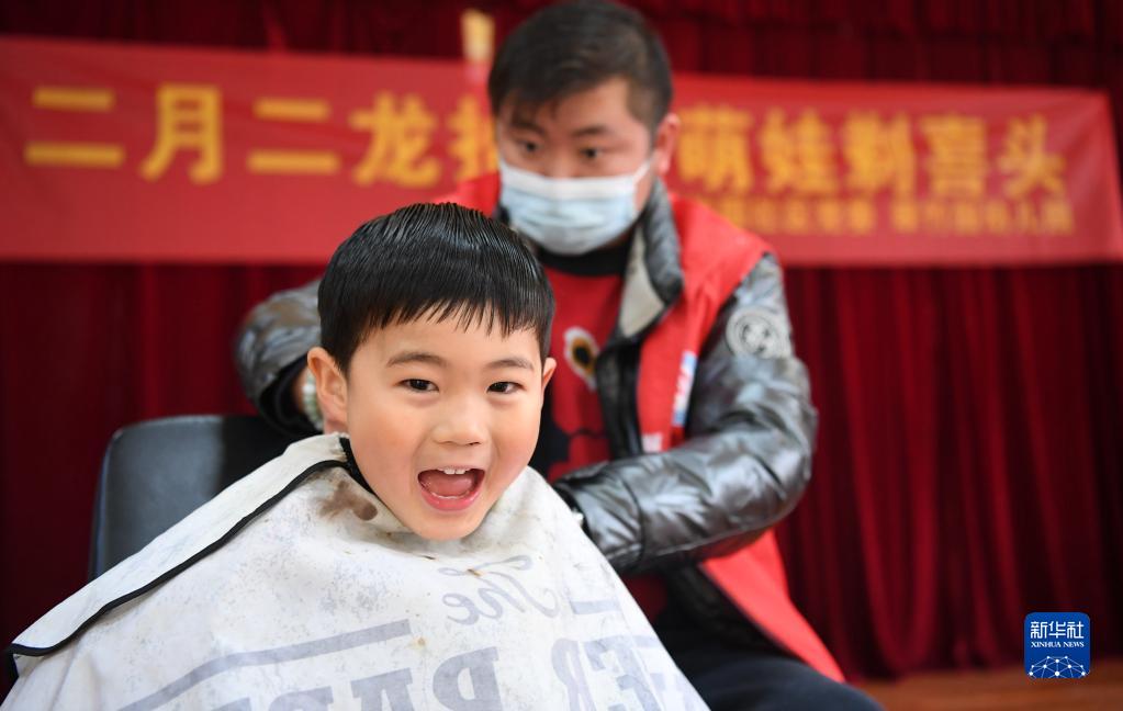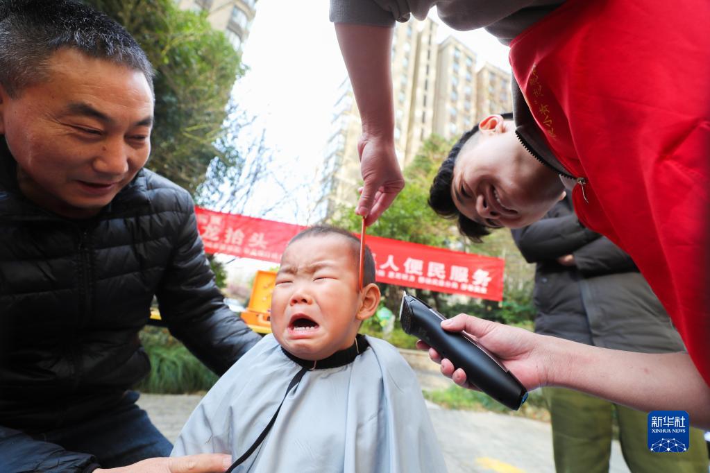 當(dāng)日是農(nóng)歷二月初二,許多家長(zhǎng)帶著孩子“剃龍頭”,祈求孩子在新的一年健康成長(zhǎng)。