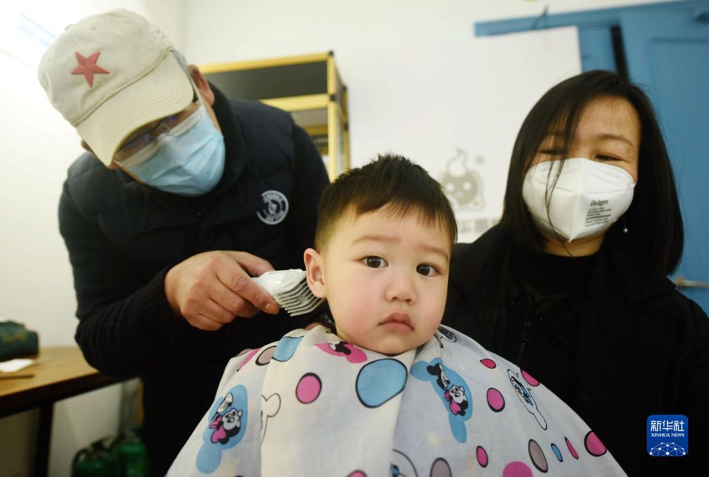 月21日,理發(fā)師在浙江省湖州市德清縣武康街道英溪社區(qū)為小朋友免費(fèi)理發(fā)。