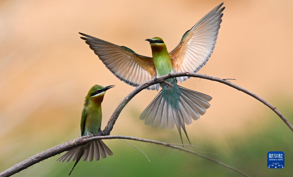 這是在五源河國(guó)家濕地公園拍攝的栗喉蜂虎(2022年4月16日攝)。