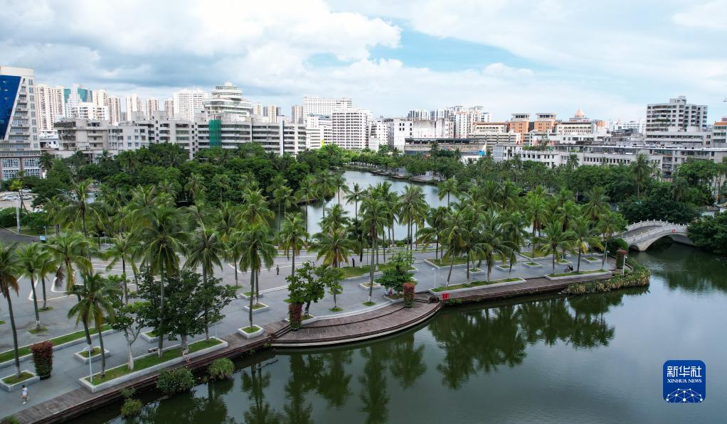航拍海口人民公園(無(wú)人機(jī)照片,8月1日攝)。