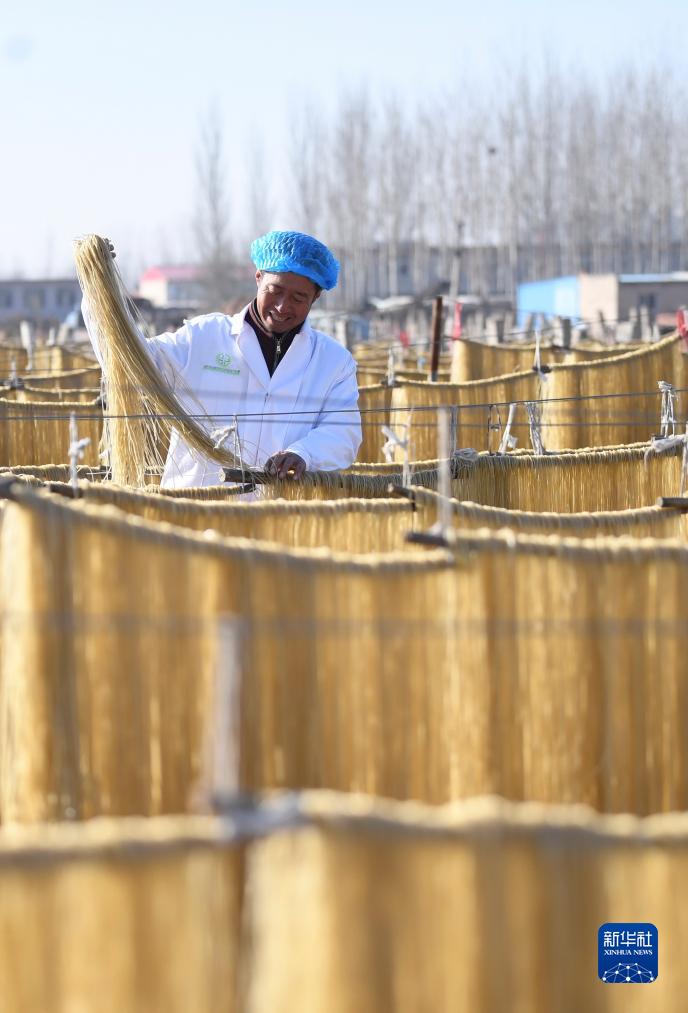 初冬時節,氣溫驟降,正是傳統手工粉條加工的好時節。在河北省遷安市,農民們忙著加工晾曬粉條供應市場。近年來,遷安市著力構建“一村一品”產業發展格局,鼓勵有條件的村莊和農戶利用冬閑時節從事粉條加工產業,不斷開拓省內外市場,有效拓寬群眾增收途徑。