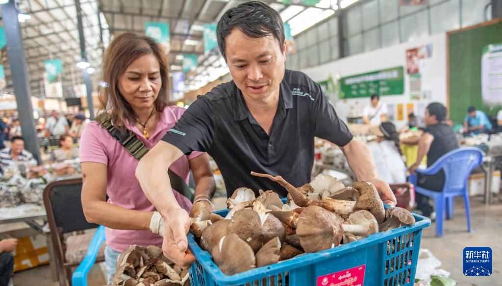 7月5日,工作人員在云南省麗江市松茸交易中心直播帶貨松茸。