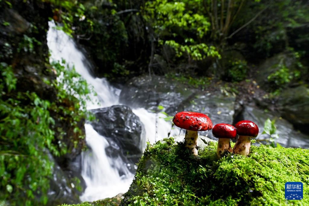 7月2日,在云南省大理白族自治州南澗彝族自治縣公郎鎮自強村無量山中拍攝的大紅菌。