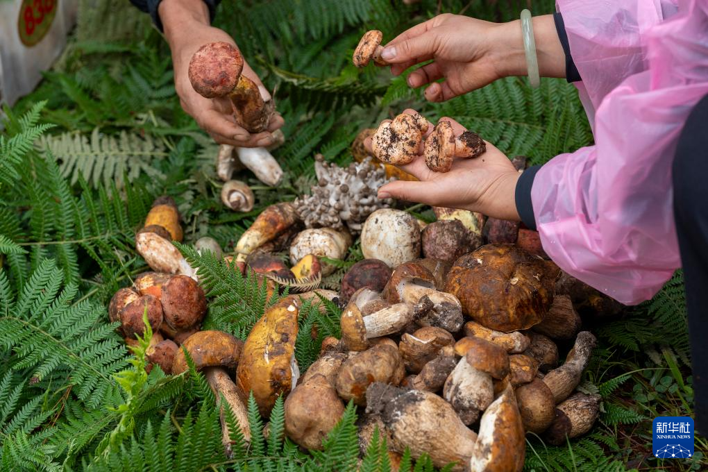 6月30日,云南省大理白族自治州洱源縣三營鎮士登村村民挑選牛肝菌。