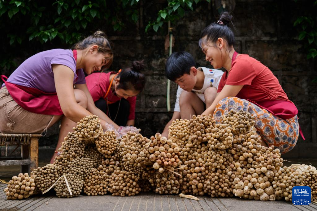 7月2日,在云南省普洱市鎮沅彝族哈尼族拉祜族自治縣恩樂鎮一家野生菌收購合作社,工人們忙著將野生紅菌清洗干凈晾曬。