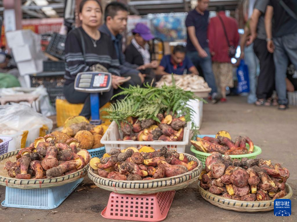 7月1日,市民在云南省文山壯族苗族自治州文山市西華菌子市場選購雞樅野生菌。