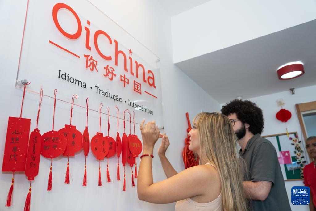1月18日,嘉賓在巴西里約熱內(nèi)盧舉行的中國(guó)春節(jié)文化體驗(yàn)活動(dòng)上展示自己制作的春節(jié)裝飾。