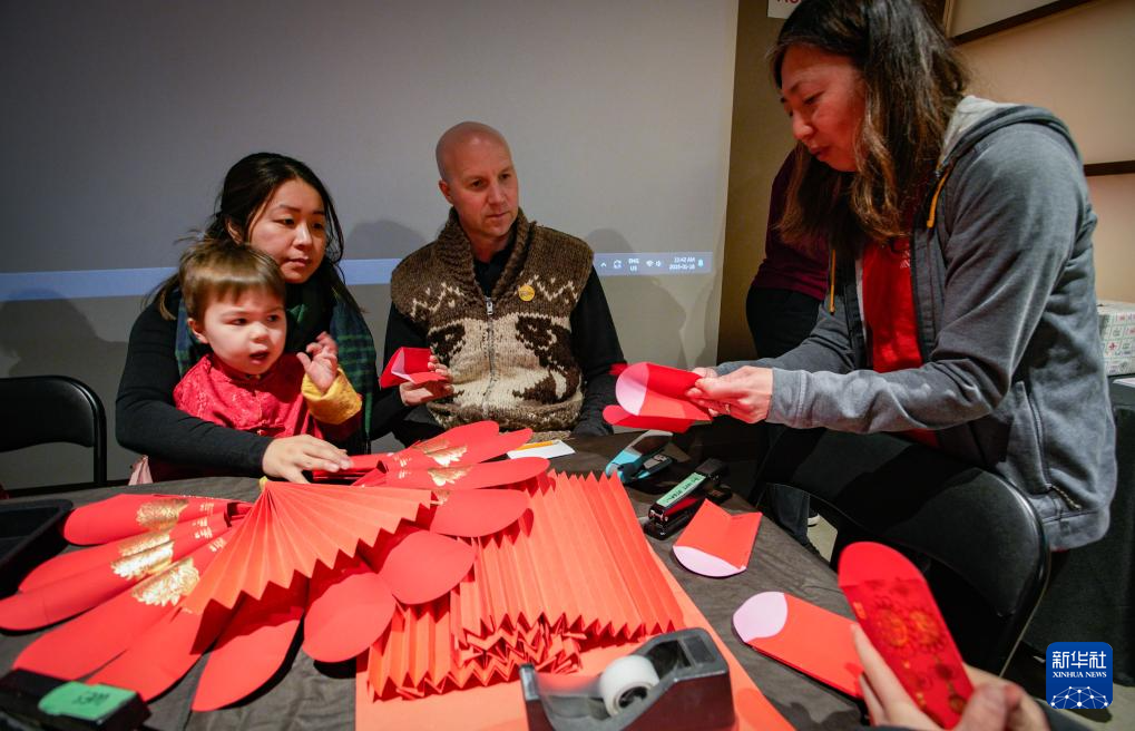 1月18日,人們?cè)诩幽么鬁馗缛A舉行的中國(guó)春節(jié)文化體驗(yàn)活動(dòng)上學(xué)習(xí)制作春節(jié)裝飾品。
