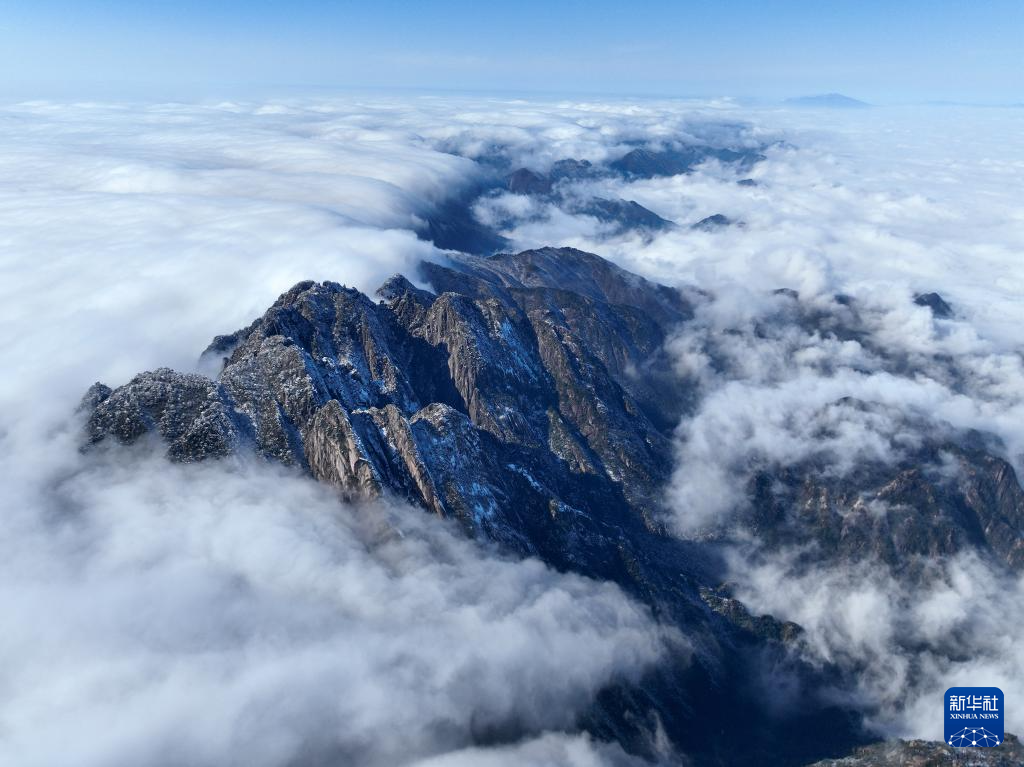 2月18日拍攝的安徽黃山風景區景色(無人機照片)。