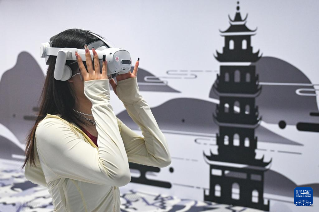 6月14日,觀眾在電影藝術展上參與VR體驗項目。