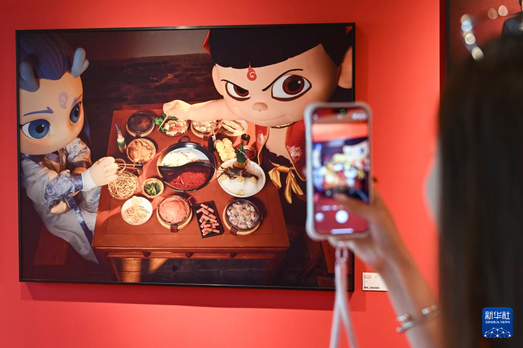 6月14日,觀眾在電影藝術展上拍攝展品。