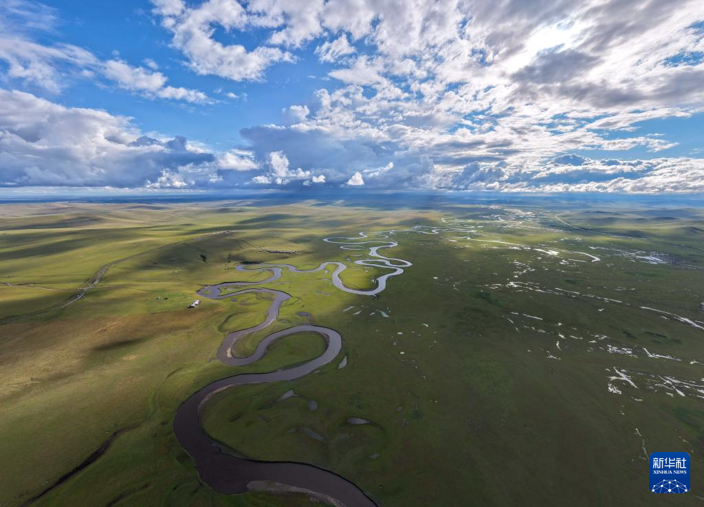 9月14日拍攝的內蒙古呼倫貝爾市陳巴爾虎旗草原上的莫爾格勒河(無人機照片)。