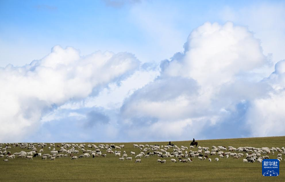 9月14日,牧民在內蒙古呼倫貝爾市陳巴爾虎旗草原上放牧。