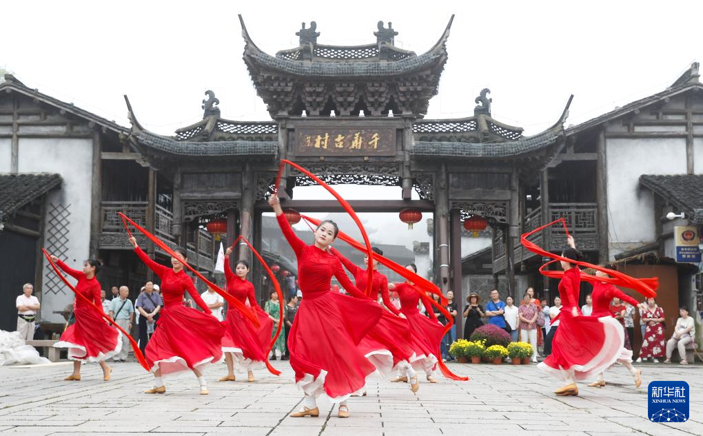 9月27日,演員在江蘇省句容市寶華山國家森林公園內的千華古村為游客表演節目。
